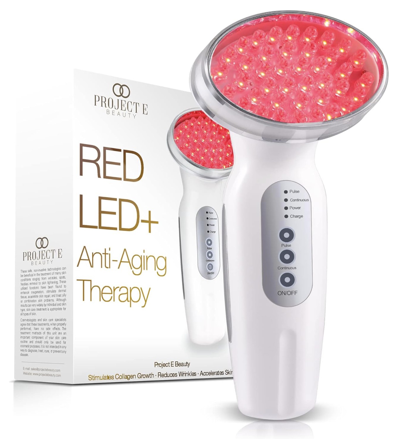 - Features 2 Modes: Project E beauty red light therapy machine features two modes; the pulse mode and the continuous mode. The pulse mode provides very brief light energy and the continuous mode provides more constant light energy that can last for up to 10 minutes.